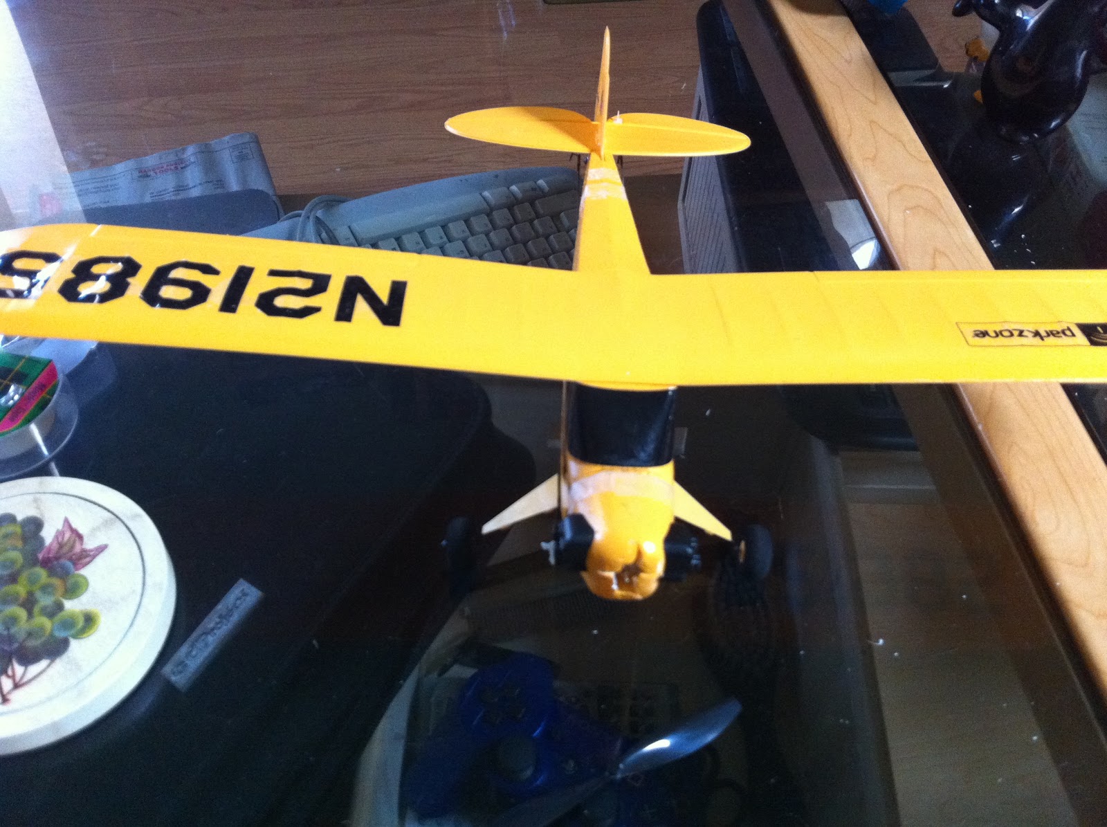 I use a DX5e radio, so my trims have to be set up every time i switch planes. no problem with the cub. after a hand launch and getting her in the air, you can trim it until she just glides.